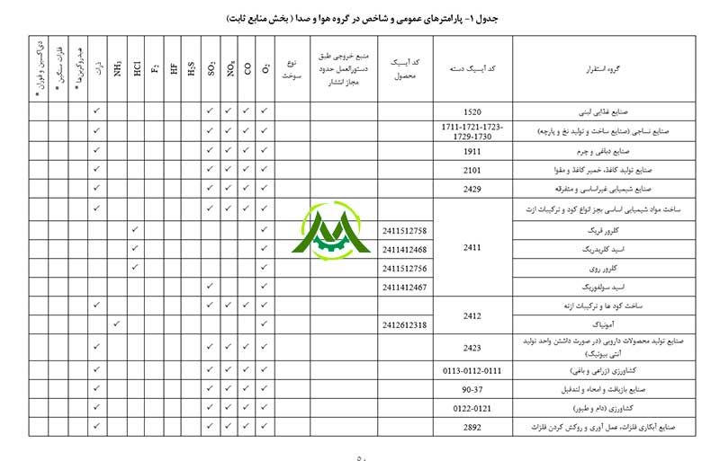 -    تبصره: در خصوص پارامترهای هوا، چنانچه برخی واحدهای صنعتی و غیر صنعتی در جداول حدود مجاز لحاظ نگردیده است، حدود مجاز سایر صنایع با هر روند تولیدی ملاک عمل قرار خواهد گرفت.