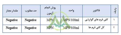 جدول ارائه شده، پارامترهای میکروبی مهم برای ارزیابی کیفیت میکروبیولوژیکی آب شرب را نشان میدهد. این پارامترها به طور خاص برای شناسایی آلودگی آب به میکروارگانیسمهای بیماریزا، به ویژه باکتریهای رودهای، مورد استفاده قرار میگیرند.